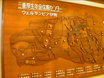 豫定の都合上夕餉まで時間を潰す必要があつたが、もう持たないといふことで、一旦内宮前を離れて、三重厚生年金休暇センターなるに風呂を浴びに行くことにした。年金でつくつただけあつてなかなか出來はよかつた。これで客がをらずに閑古鳥でも鳴いてゐようものなら徹底的に惡口雜言の限りを盡くしてやるところだが、さうでもなかつたので、止めておく。一應、入つたそばに掛かつてゐた案内板みたいなのを寫眞に收めた。